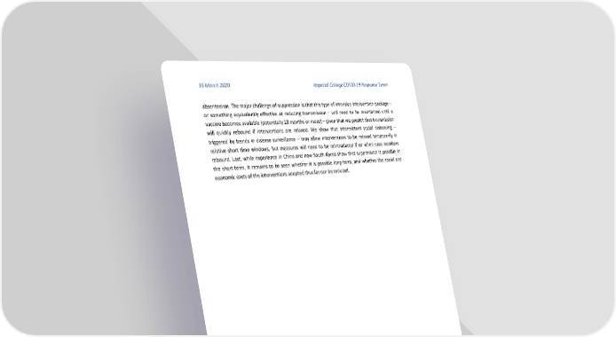 16 March 2020 Imperial College COVID-19 Response Team absenteeism. The major challenge of suppression is that this type of intensive intervention package – or something equivalently effective at reducing transmission – will need to be maintained until a vaccine becomes available (potentially 18 months or more) – given that we predict that transmission will quickly rebound if interventions are relaxed. We show that intermittent social distancing – triggered by trends in disease surveillance – may allow interventions to be relaxed temporarily in relative short time windows, but measures will need to be reintroduced if or when case numbers rebound. Last, while experience in China and now South Korea show that suppression is possible in the short term, it remains to be seen whether it is possible long-term, and whether the social and economic costs of the interventions adopted thus far can be reduced. DOI: https://doi.org/10.25561/77482 Page 2 of 20